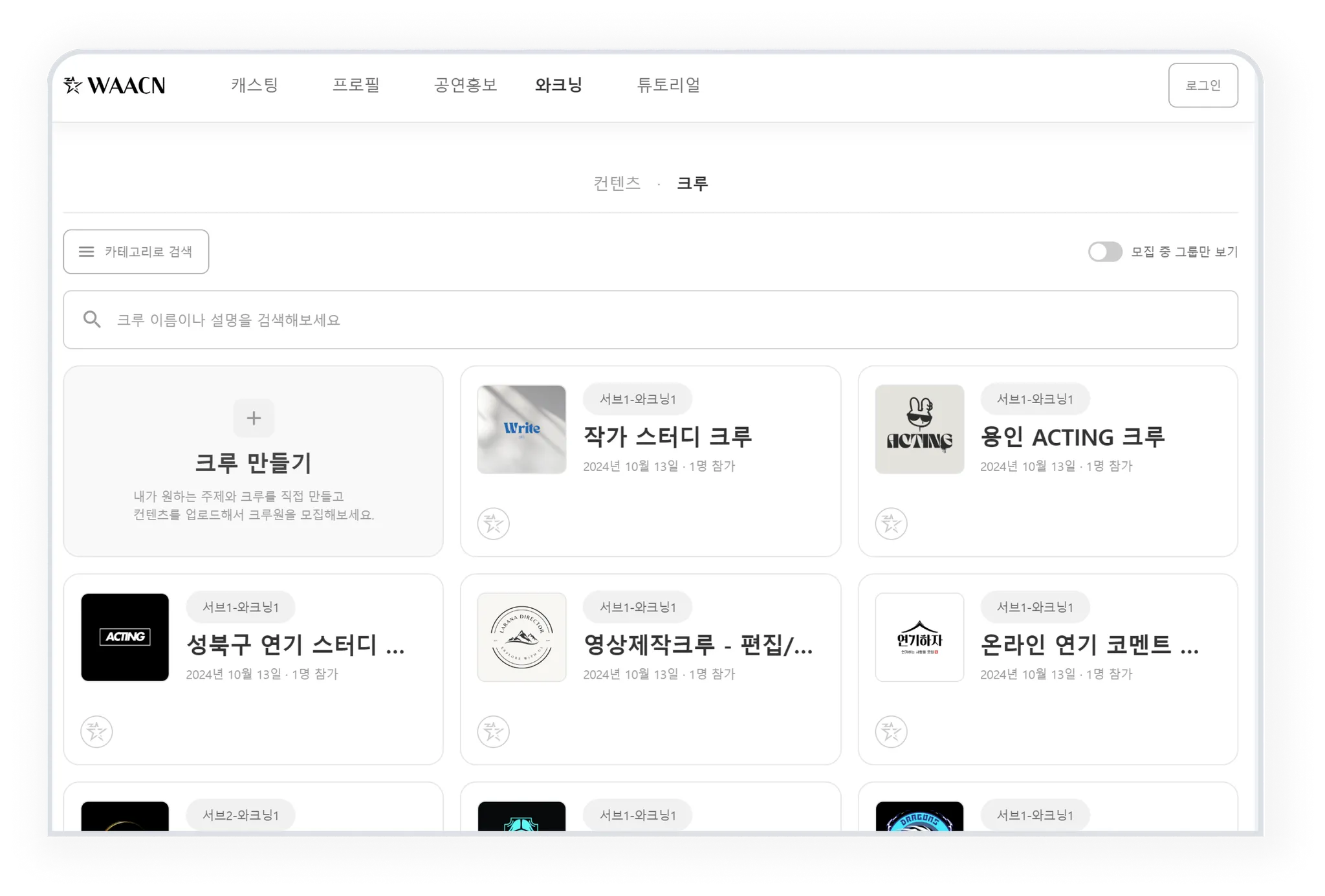 스터디 크루, 제작 크루, 공연팀 크루 등.