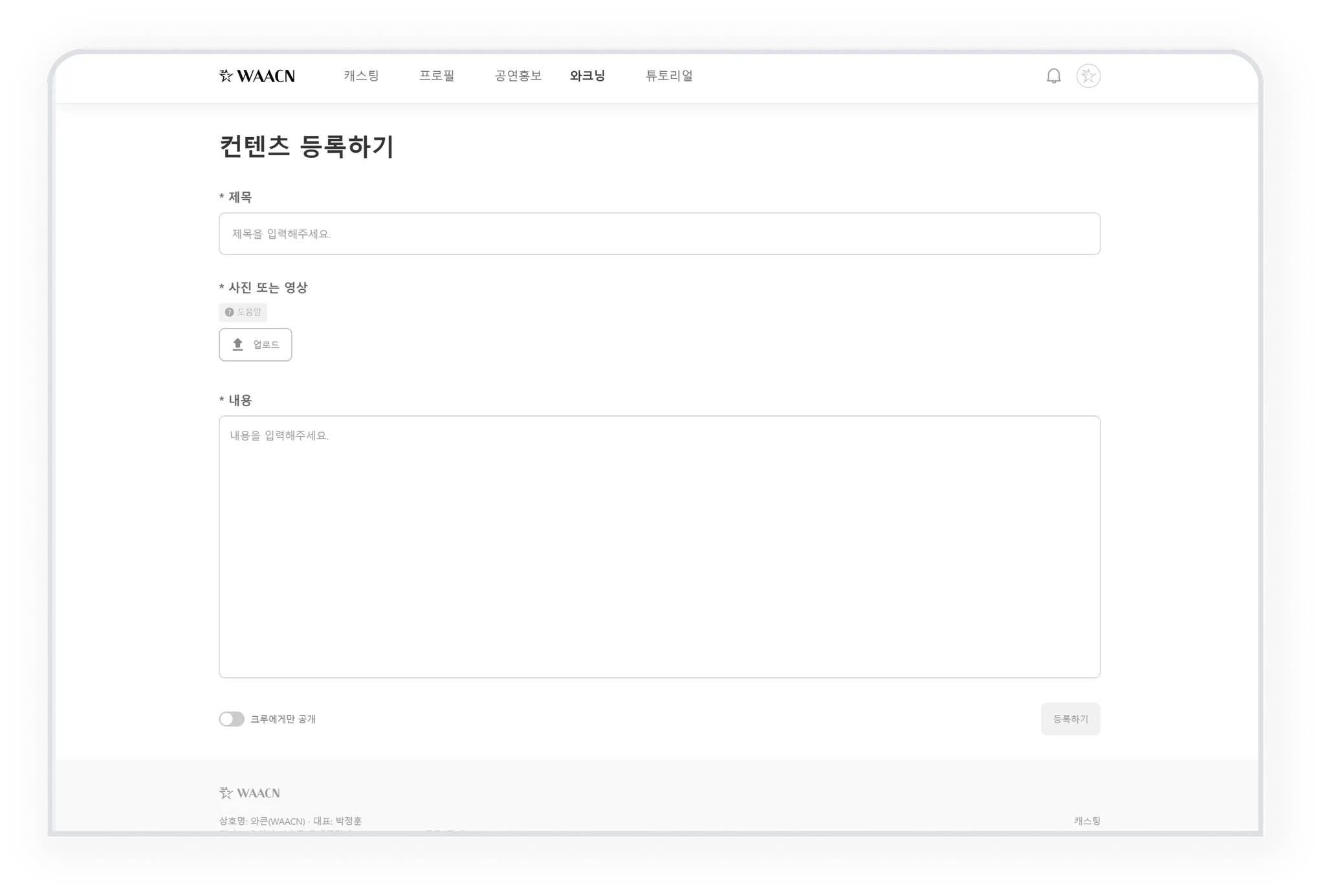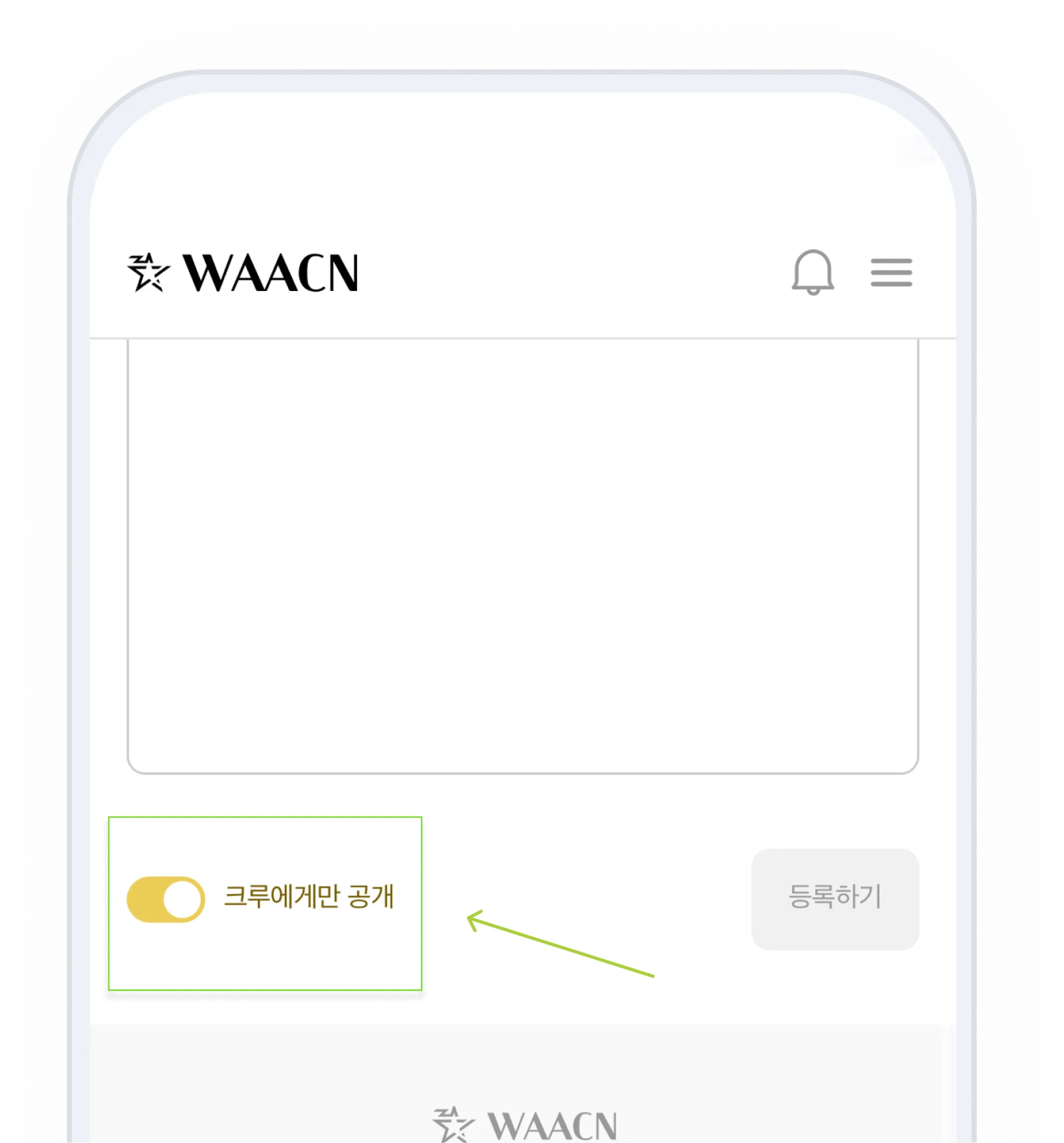 등록한 컨텐츠를 외부에 노출하고 싶지 않다면 ‘크루에게만 공개’ 기능을 이용해주세요.