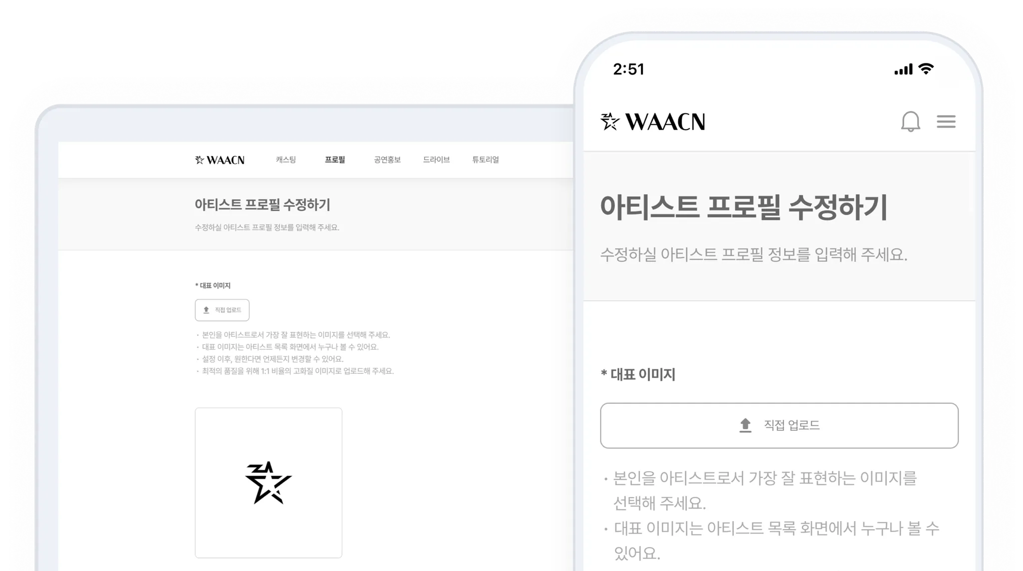 ‘마이페이지 → 아티스트/스태프 프로필’ 클릭!