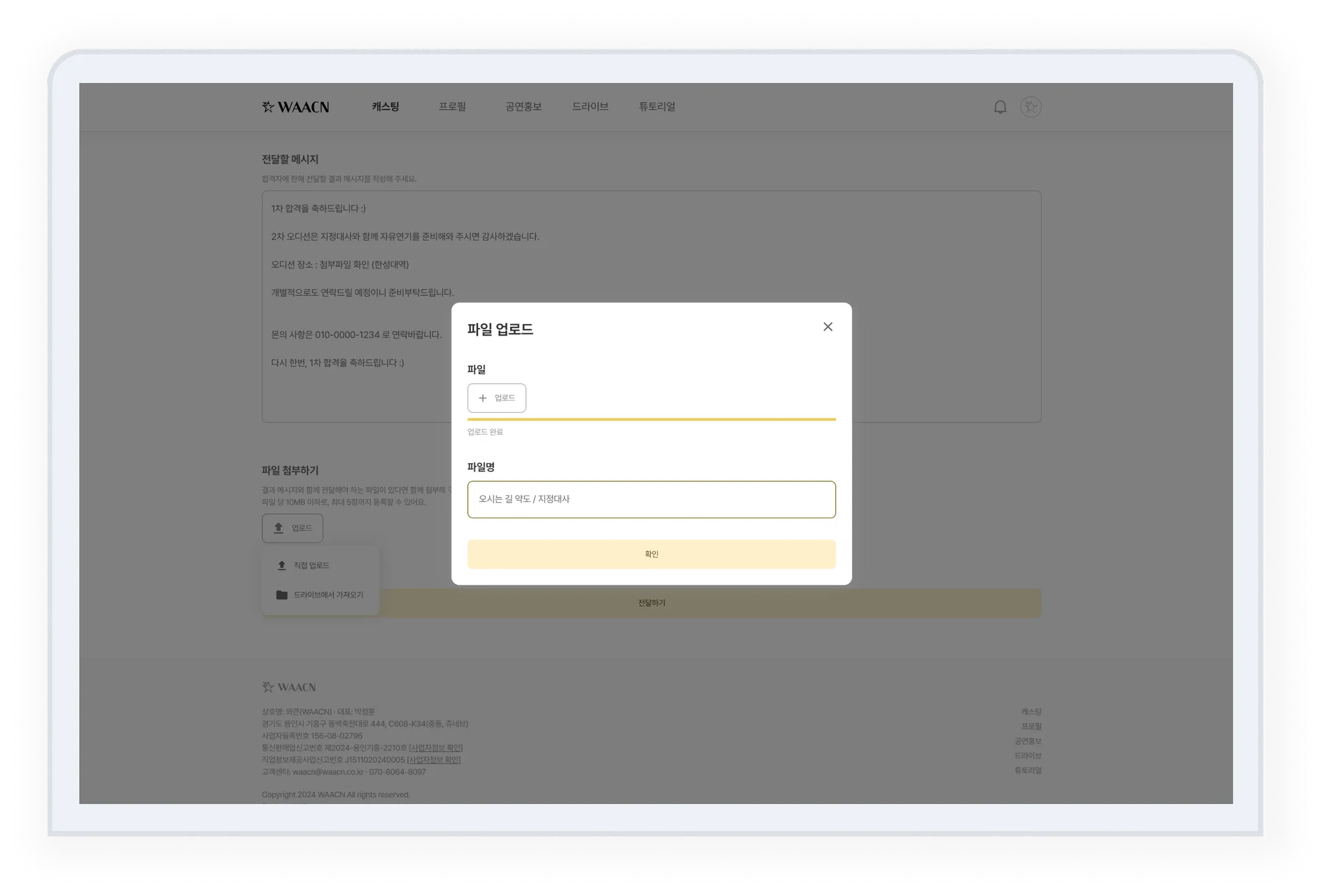 합격자에게는 결과 전달시 메시지와 함께 첨부파일을 함께 전달할 수 있어요.