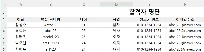 합격자들의 연락처/기본사항 등이 깔끔하게 정리된 엑셀파일을 추출할 수 있어요.