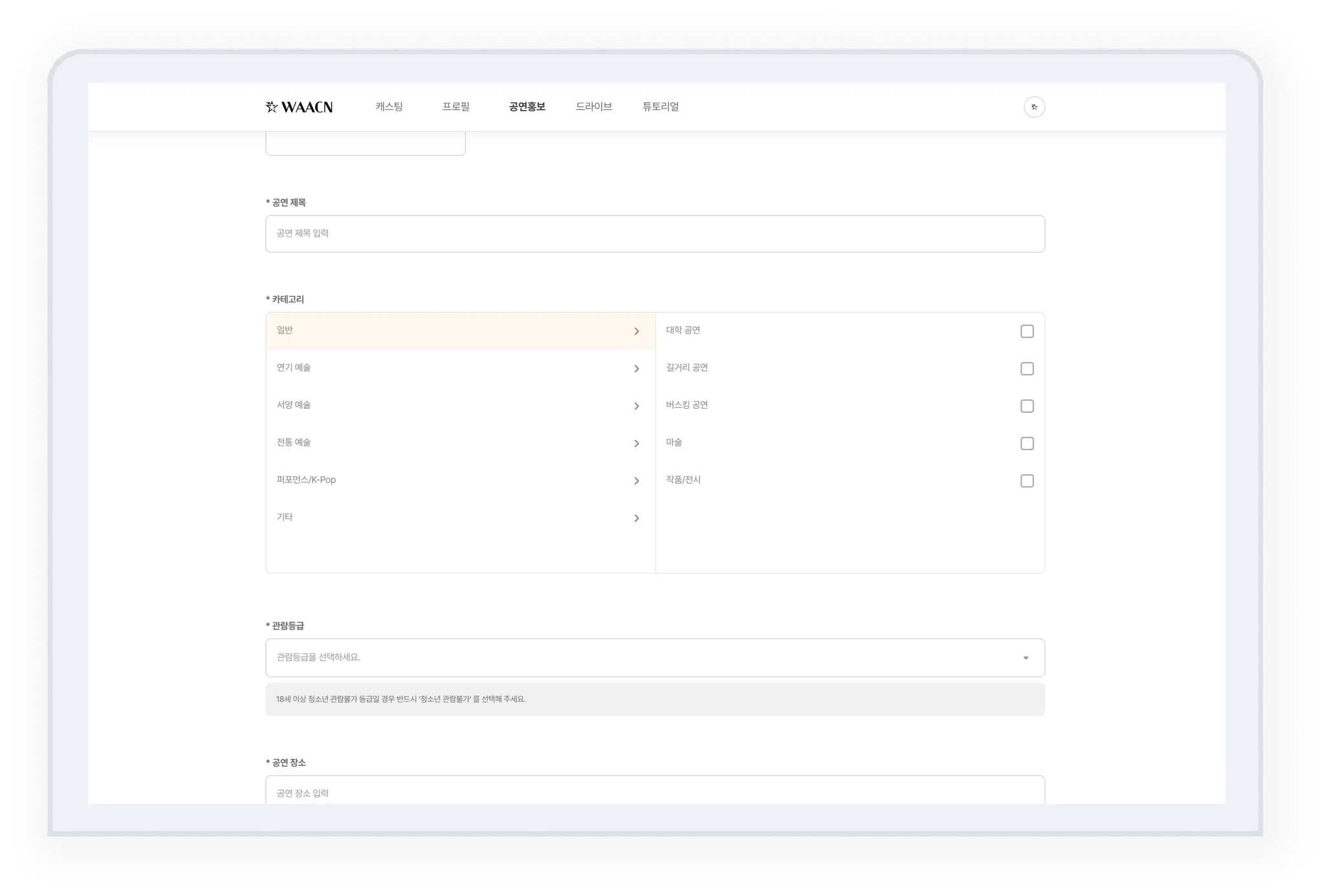 공연에 대한 정보들을 정확하게 입력해주세요.