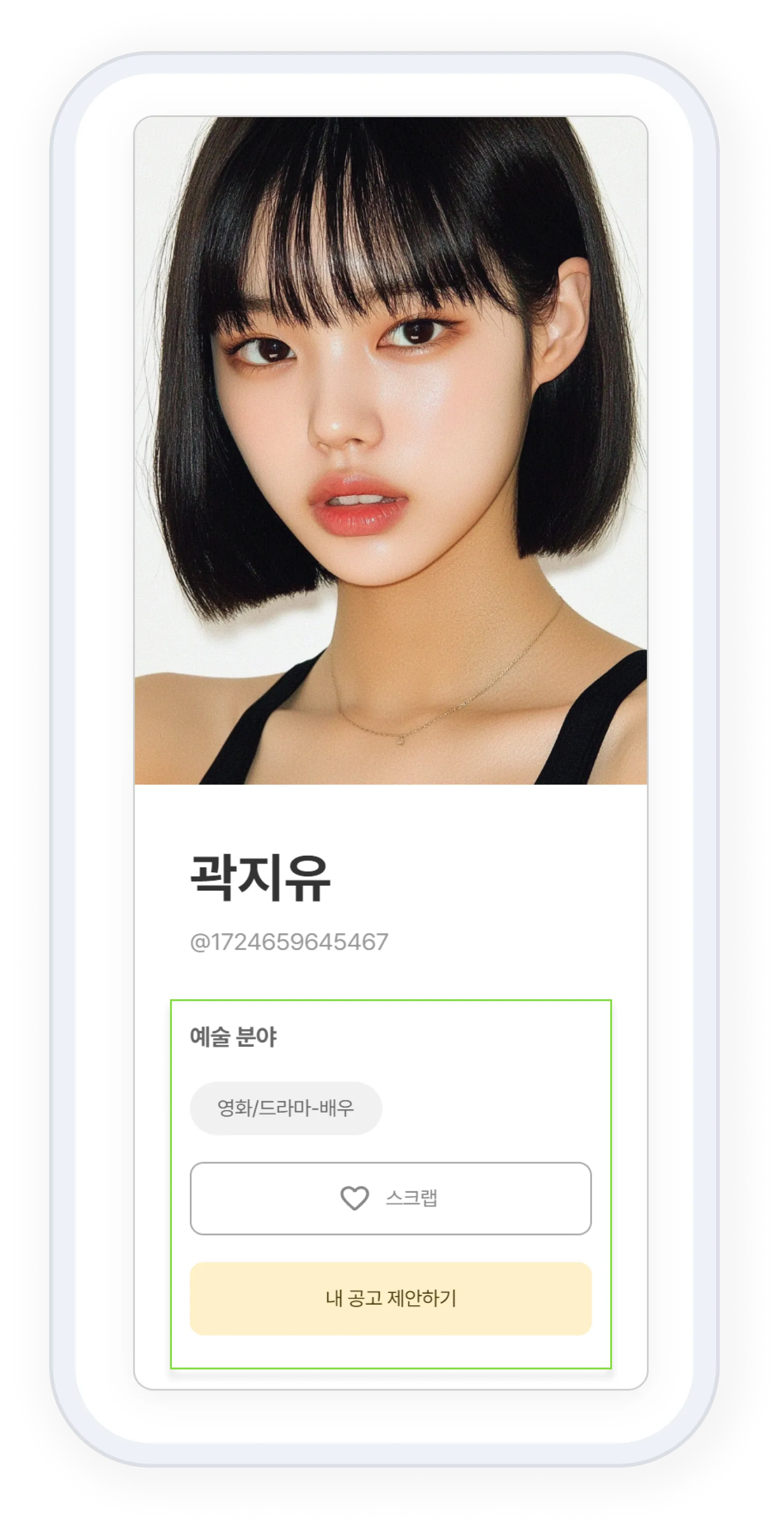 해당 아티스트를 찜하거나 내 공고에 지원을 제안할 수 있어요.