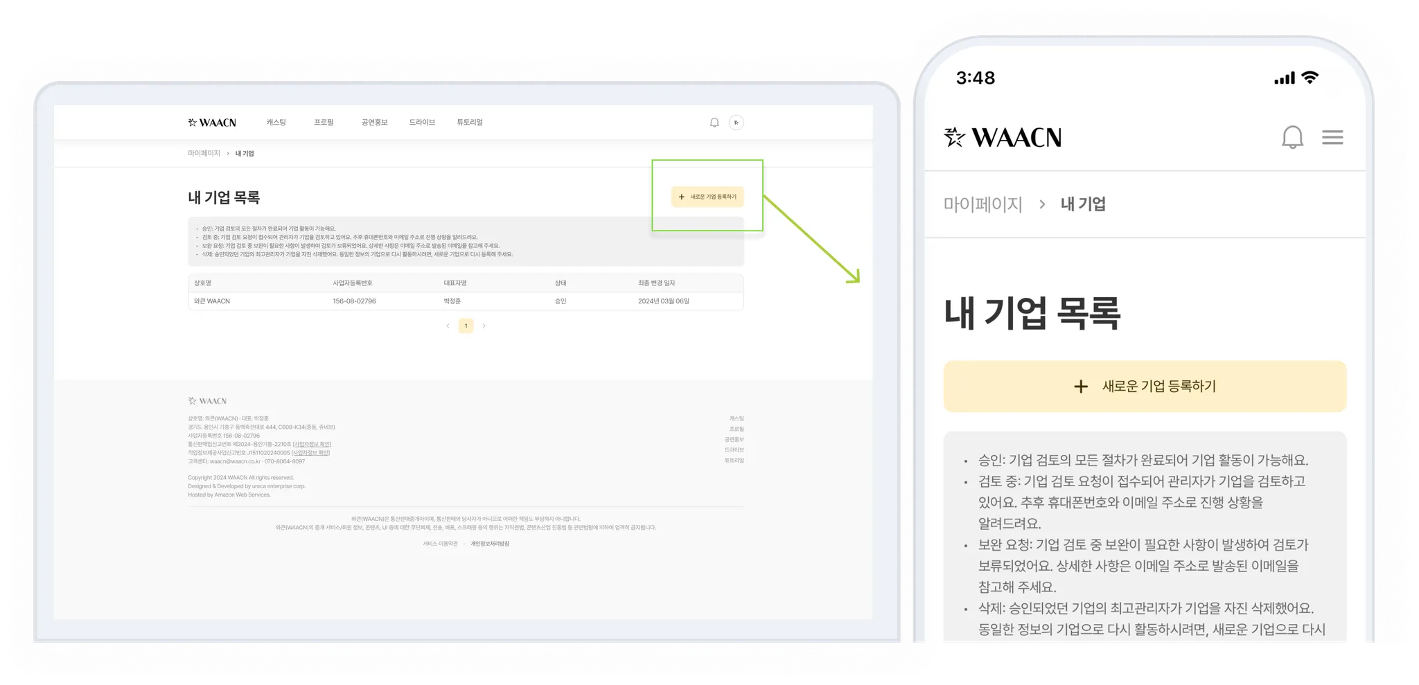 관리자의 승인 후, 기업의 기능 이용이 가능해요