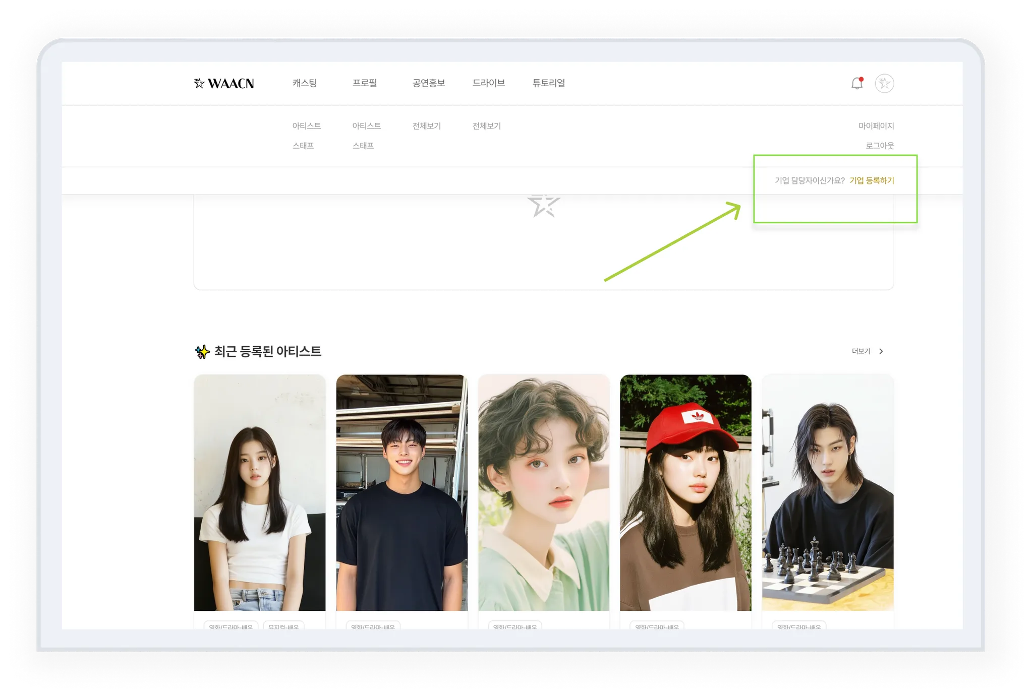 상단 메뉴에서 ‘기업 등록하기’ 클릭!