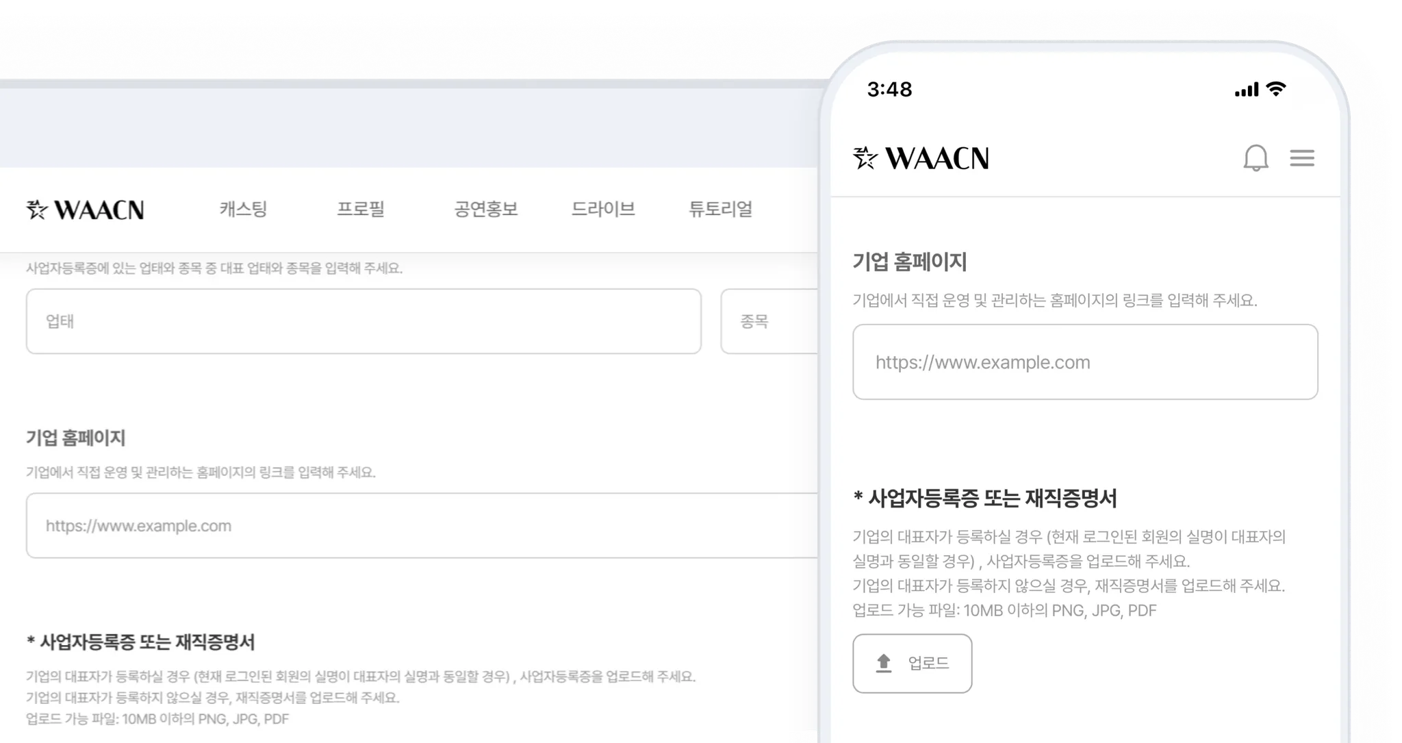 기업 홈페이지 입력과 함께 사업자등록증 또는 재직증명서 제출!